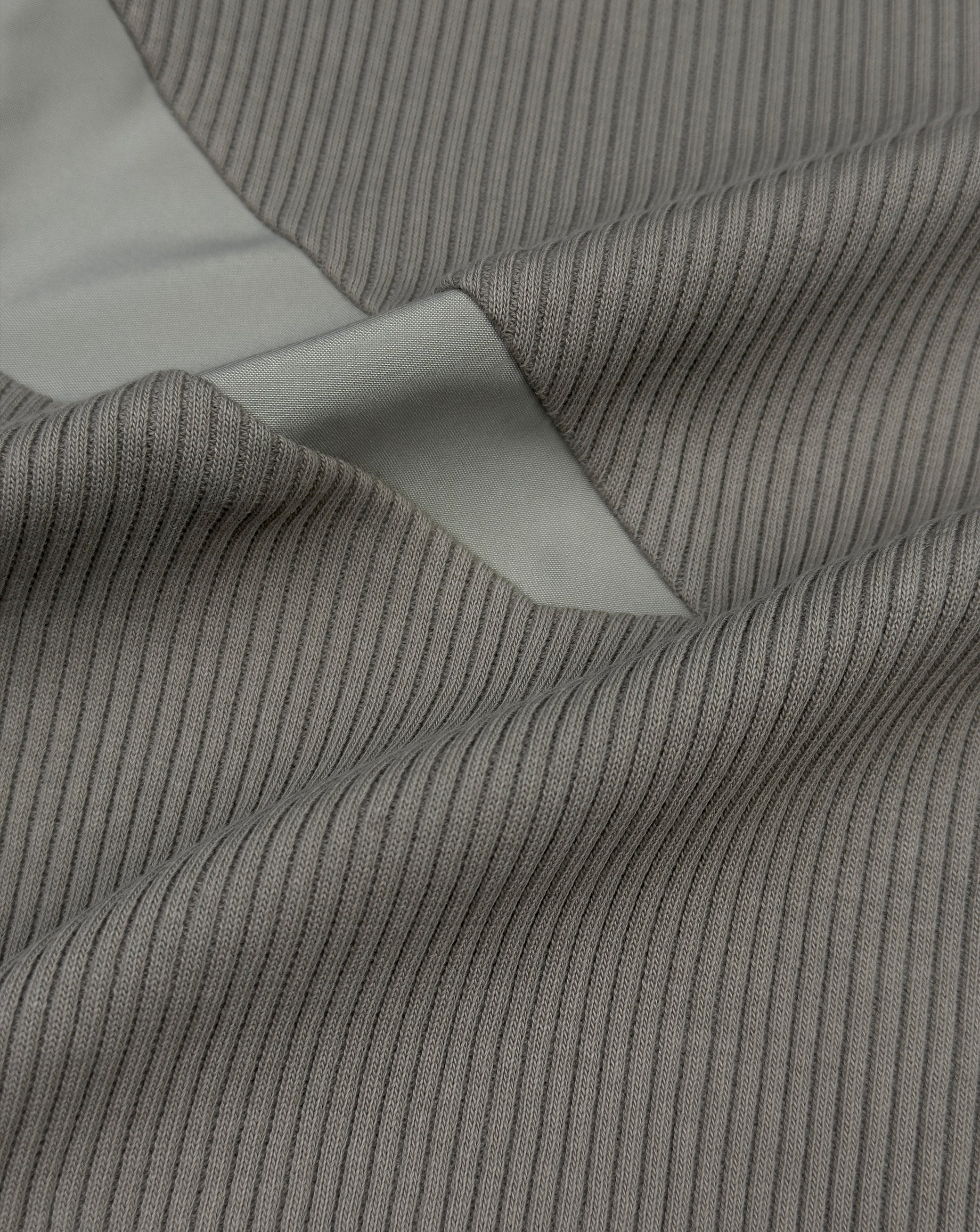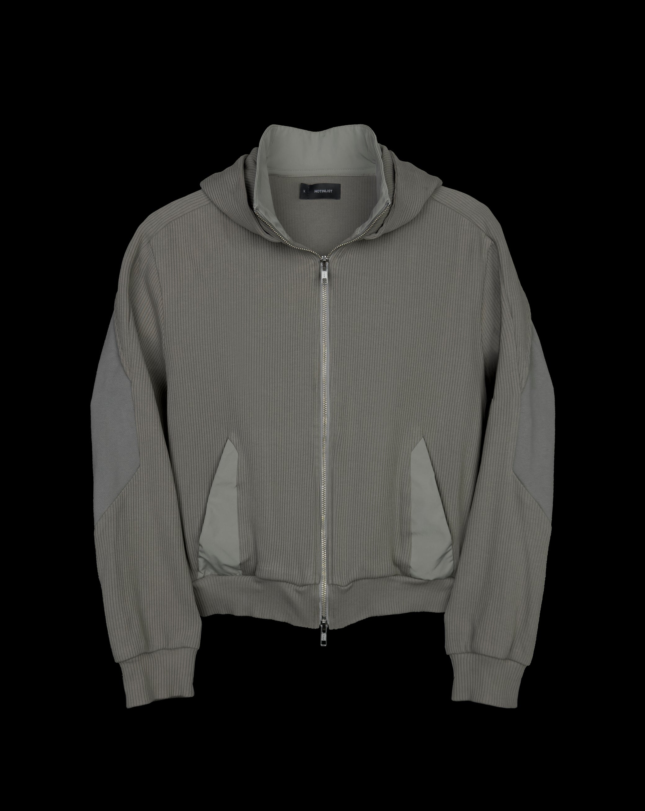 An updated take on the signature zip-up hoodie in beige, redesigned with improved sleeve articulation and refined proportions. Features a dual stand collar and a two-way YKK® zipper closure with front placket for function and style.