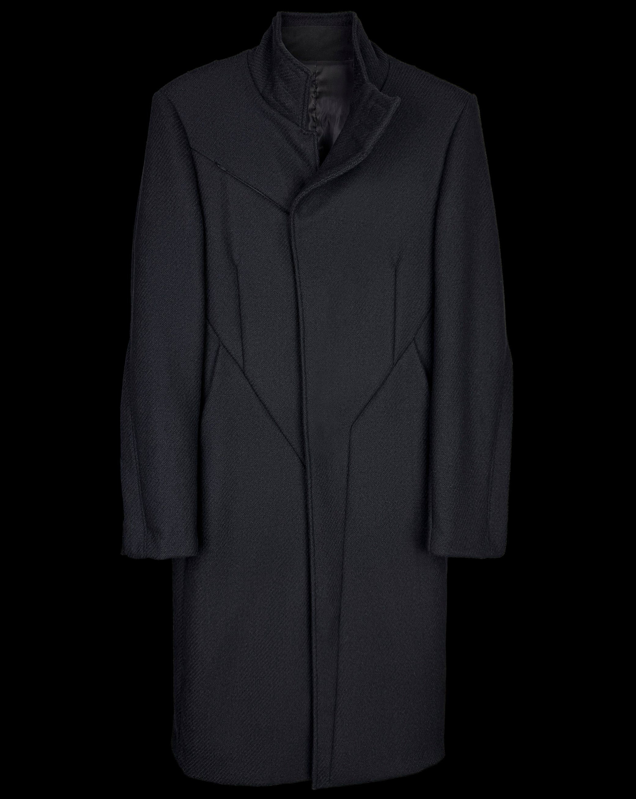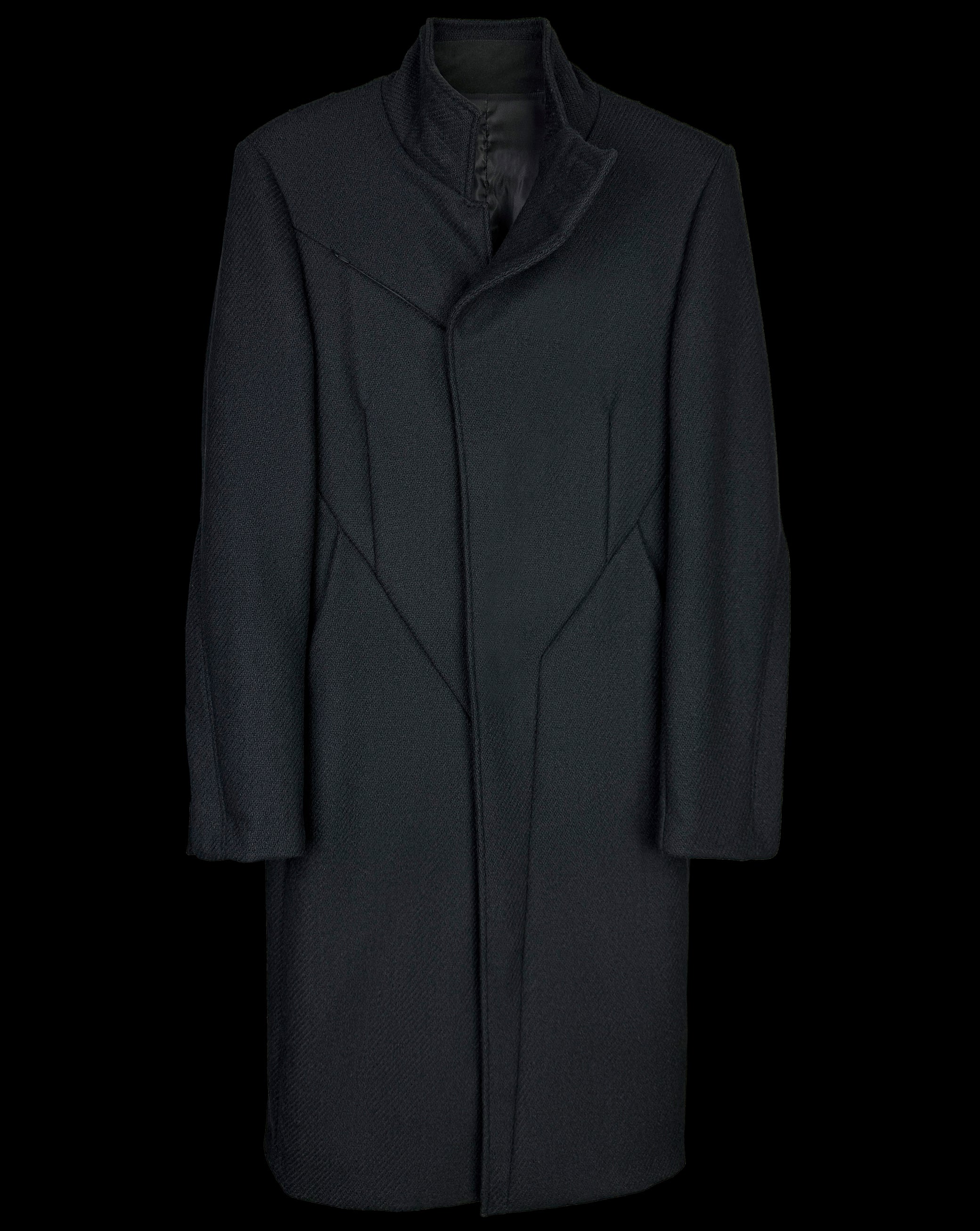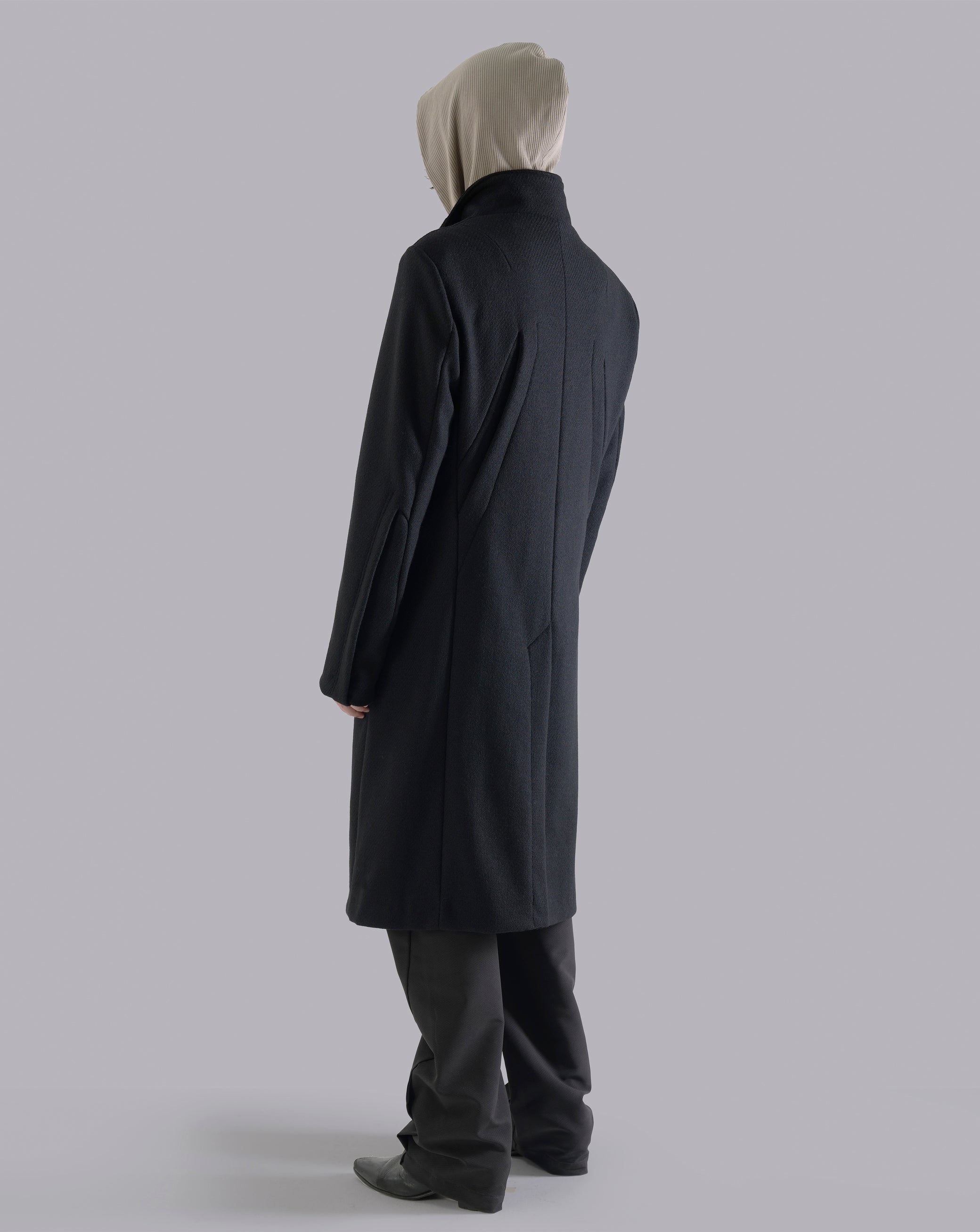 A long wool coat introducing Xander’s new visual language. Designed with a YKK® snap-button front closure, a stand collar with hidden magnetic button, concealed front pockets, and dual inner chest pockets for functionality with a refined silhouette.